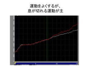 ②息が切れる強度の運動を続けている人のCPXの測定結果です。